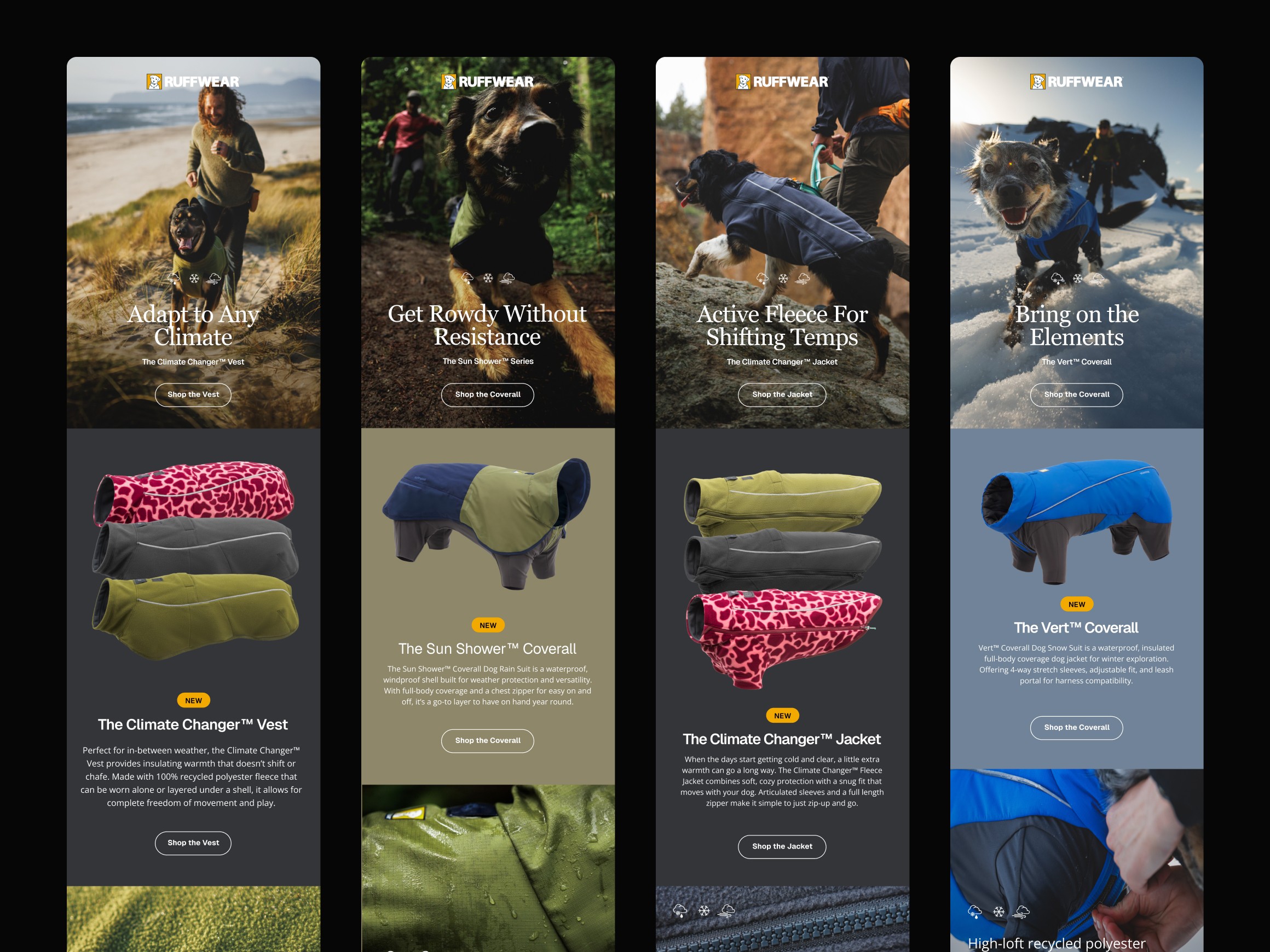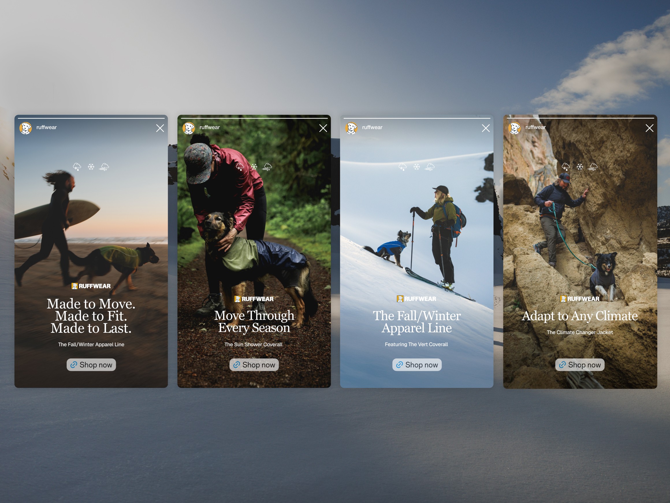 The creative approach for FW25’s Apparel Campaign were driven by an elevated simplicity, continuing to push Ruffwear into the more premium space consumers expect from adjacent outdoor, human brands. The rich, dramatic tones of the season served as the foundation to let movement, connection, and product performance shine through.